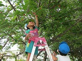 脚立にのって、サクランボとり、サクランボを食べたらイチゴ摘み、イチゴを