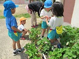 ゴールデンウィークの間に園庭のサクランボやイチゴが真っ赤に。