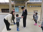3月20日 田辺東小学校の卒業式に年中すみれ組が、手作りのお花を持ってお祝いに行きました。6年生とはあじさい交流で一緒に遊んだり、クリスマス会で楽しい出し物を見せてくれたり…素敵な思い出がたくさんあります。「いっぱいあそんでくれてありがとう!卒業おめでとう!」と一人一人声を掛けお祝いをしました。