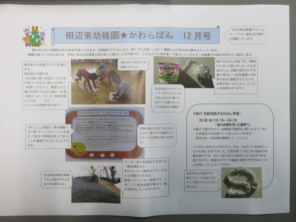 「田辺東幼稚園★かわらばん」11月号・12月号