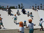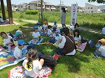清々しい五月晴れの中、4、5歳児で防火川公園に。新緑の小道をまっすぐ行くと到着。つるつるの白い滑り台を何度ものぼったり、降りたり。クローバーの花で首飾りやブレスレットを作ったり。友だちと遊具に乗ったり。手も足もいっぱい動かして遊び、擦り傷の勲章をおみやげにした子どもたち。職場体験の大住中のお兄さんに遊んでもらい、サッカーのリフティングや陸上の極意を教えてもらったり、隣の小学校3年生のこどもたちと一緒に遊んだり、人との触れ合いもいっぱい。貴重な体験が出来ました。