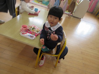 無事にお雛様もお部屋に帰り、ひな祭り会をしました。