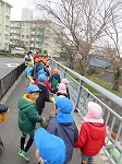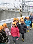 横断歩道や踏切を渡って、歩道橋を超えて…田辺幼稚園に到着!