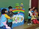 ちなみに…ロボットの「ろぼた」とカエルの「けろのすけ」に「美人の女の子~!」と聞かれた会場の女の子達は「きゃ~!」と照れた様子で元気いっぱいに手を挙げて、「美人な男の子~!」と聞かれた男の子達も「はーい!」とお返事をしていました。みんなとっても可愛らしかったです^^