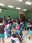 元気いっぱいの子ども達。先生も一緒に「音楽、スタート!」