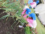 昨年植えたジャガイモと玉ねぎを収穫しました。「いっぱいできているかなー」「大きいかな?」楽しみにしながら友達と収穫です。