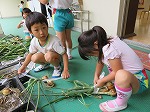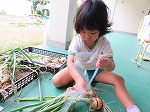「玉ねぎはくくって干すと、辛味がなくなって甘くなるよ」と先生に教えてもらい、お手伝い。「なかなかくくれない」「むずかしい」と言っていた子どもたちも、だんだん上手になりました。