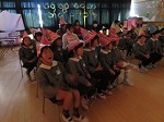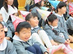 ♪赤鼻のトナカイの手遊びをみんなでした後、6年生から♪Can Doという歌を聞かせてもらいました。素敵な歌声にみんなうっとり。聞き入っていました。一緒に♪あしたになぁれのフォークダンスをして触れ合いを楽しみました。