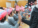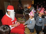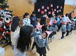 プレゼントのお礼に歌や合奏をプレゼントしました。「とっても上手だね~」とサンタさんに褒めてもらいうれしそうな子ども達でした。