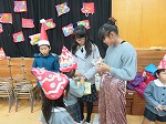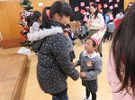 プレゼントを一人一人手渡してもらいました。幼稚園の子ども達からはリースのプレゼントをし、プレゼント交換をしました。