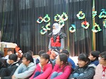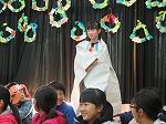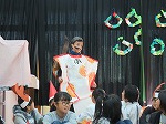 「みんな~サンタさーんって呼んでみて!」「サンタさーん!」ジャジャーンと現れたのは聖武天皇!「ちがーう。サンタさーん!」次は紫式部!「またちがーう。サンタさーん!」次は弁慶が出てきて「サンタはいないそうです」と戦国武将が言いに来てくれました。「サンタはいないので6年生が代わりにプレゼントをあげます。」と