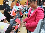 第2部は田辺東小学校6年生が来てくれ年長ゆり組と年中すみれ組と一緒にクリスマス会をしました。校長先生が大きな折り紙で雪だるまを折って見せてくださり、「大きい雪だるまは6年生!小さい雪だるまは幼稚園のお友達!こんな風に仲良く楽しいクリスマスにしましょう」とお話してくださいました。