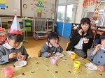 最後に、楽しみにしていたケーキで会食しました。地域のケーキ屋さんの子ども達を思う気持ちがつまったケーキでした。「おいしいね♡」「いちごものってる」会話も弾みいいお顔でした。
