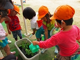 ミニトマト4歳児はエダマメを植えました。これから楽しみ。無事に収穫までいけ