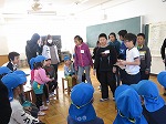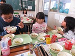 2月27日 年長ゆり組は田辺東小学校に給食体験に行かせてもらいました。1月の給食体験は残念ながら学級閉鎖で中止となり、今回はみんな元気に行くことができて喜んでいました。前回は初めての給食ということで緊張したり、「食べられないよー」と不安になったりしましたが、今回は2回目ということで楽しみにしていた子どもたちです。5年生が迎えに来てくれ、一緒に5年生の教室へ!「これくらい食べられる?」「嫌いなものない?」と優しく声をかけてもらいながら配膳してもらいました。