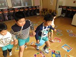 子ども新年会をしました。お正月遊びについて話を聞いて、異年齢のなかよしトリオでコーナーをまわりました。