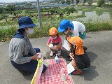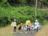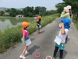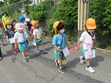 ♪おとくいず♪ ~きいてみよう~ 今年度は「音」に着目して遊びを研究しています。 「ようちえんたんけん」でも、「おとくいず」のコーナーを毎回設けています。  紙コップの中に3種類の「?」が入っています(中身は見えないようふたをします) 教頭先生の紙コップと同じ音がするのはどれかな? だんだんコツをつかんできて、上手にきき分けられるようになっています! コップの重さに着目して、「同じ重さ」のコップをさがすお友達も。発想にびっくりです。 先週の「ぼうけんウォークラリー」では、いつもと違う「おとくいず」をしました。木津川堤防でウォークラリーをしましたよ。(「ぼうけんウォークラリー」の写真はインターネット販売で閲覧・購入できます。)  「おとくいず知ってる!」「あれ、紙コップに何も入ってないよ」  紙コップの底をくりぬいて、筒状にしたもので「おとくいず」をしました。 「耳に当てて、いろんな音をさがしてきてね!」 田んぼの方向、草の中、サイクリングロード側、動き回ってきいていました。 制限時間1分間で、最高記録は6種類でした。 ☆トラクターや自転車、電車の音 ☆鳥の鳴き声 ☆白いちょうちょの声(!) ☆風の音 1分間耳をすませてきく、という機会は新鮮で、先生も一緒に楽しみ癒されました。登降園時など、親子で「音」を感じてみてくださいね。 |