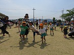 次は園庭に出て元気いっぱい♪耐久戦隊ガマンの体操をしました。お父さん・お母さんも一緒に、子どもたちが普段楽しんでいる体操をして、体を動かしてくださいました。