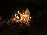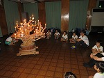 「カサっ」と物音がして火の神様が火を持ってきてくださいました。キャンドルに火をわけてもらい、幻想的な雰囲気に包まれました。