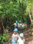 ワクワクドキドキ探検のスタートです!グループごとに力を合わせて進みました。