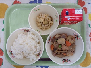 今日の給食は、いい歯の日献立で、よく噛むメニューに
