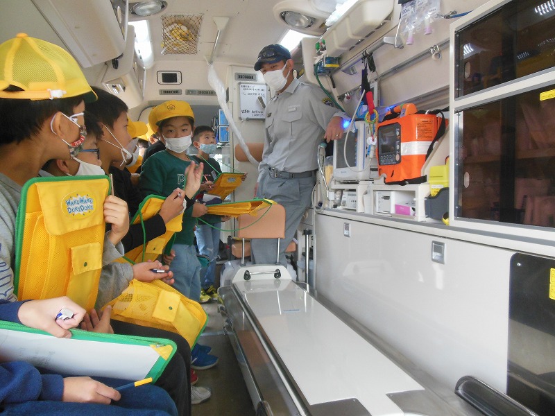 3年生社会では「安全なくらしをまもる」という単元があります。これは高学年の税金や公共サービスの学習につながる内容です。昨日は京田辺市消防北部分署から消防車と救急車に来てもらってわたしたちの安全なくらしを守る仕事について学習しました。来月は田辺署の出前授業も受ける予定です。