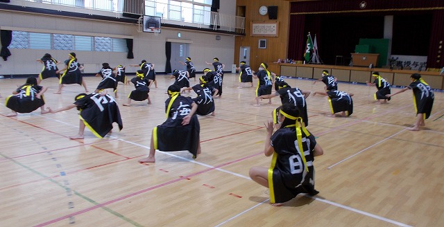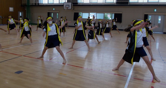 5年生は本番で使うはっぴを着て表現発表練習をしました。