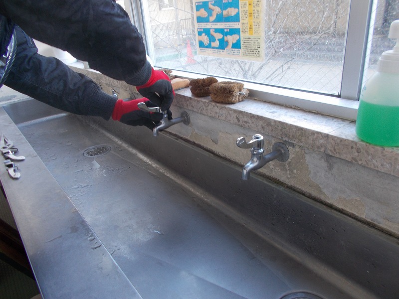 東京地下鉄大江戸線の集団感染の教訓を基に水道の蛇口のカランを取り替えました。従来の手回し式からレバー式への変更です。これで接触時間や面積はかなり少なくなることが期待されます。トイレ小便器のプッシュボタンのセンサー化も今年度中に終了します。