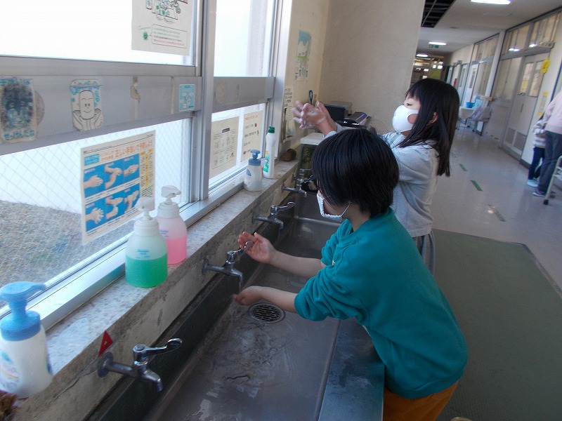 明日の下校時刻は1~2年が14:40、3~6年は15:25です。明日・明後日は書き初め展があります。展示場所は各教室前の廊下です。感染防止のため保護者の皆様は16:00~17:00に参観ください。職員玄関・児童昇降口・プレハブ棟入口には消毒液を準備しています。上履きとマスクをご持参ください。またこのHPでも「各学年の部屋」にてクラス別に書き初め展の写真を明日から掲載します。