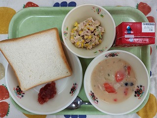 給食では、ジャムを作り、食パンと一緒に食べました!