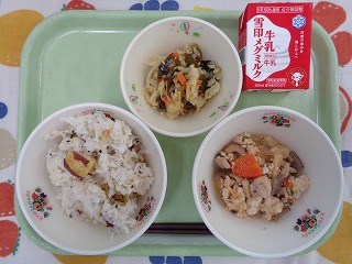 今日のごはんは、『さつまいもご飯』です。