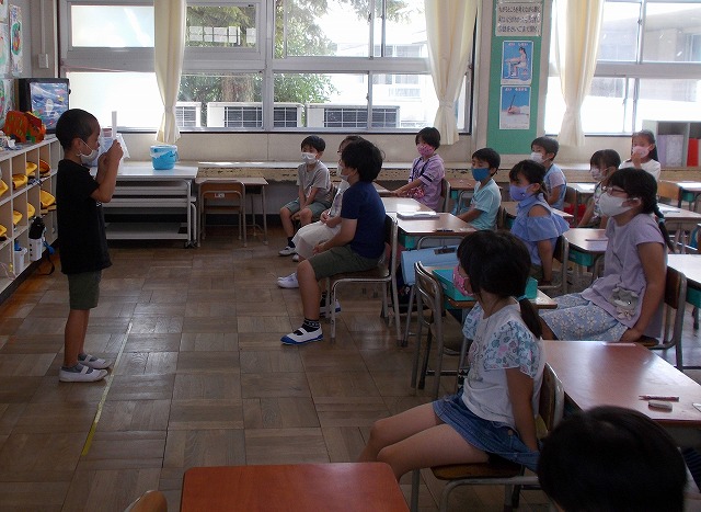 1年生では「夏休みに頑張ったこと」を発表しました。明日からの給食再開に向けて調理員さんが給食室で準備を始めました。初日の献立は夏野菜のカレーです。