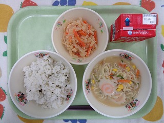 給食前から、「みそラーメン♪」ととても楽しみにしてくれ