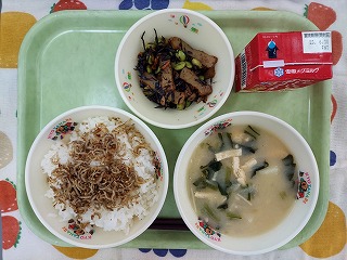 今日の給食には、「まごわやさしい」の食材がすべて使