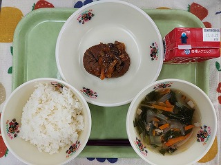 今日の給食では、にんじんの皮をハンバーグのきのこソースに使いました。子どもたちも、よく食べてくれ、残菜がとても少なく良かったです!