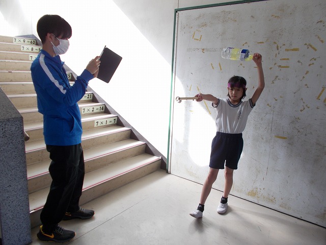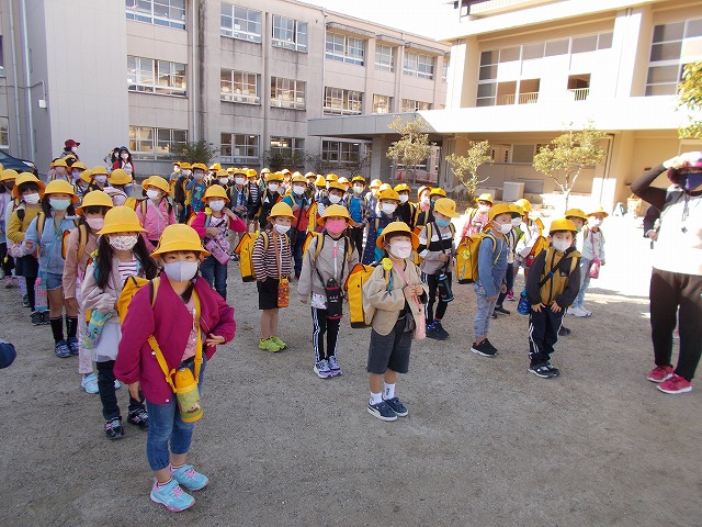 1年生は小学校で初めての校外学習に出発しました。4年生は、この後エイサーを演じる自画像制作に取り組みます。そのための写真撮影に臨みました。