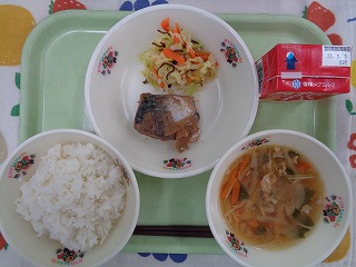 さばは、あじやサンマと同じ青魚の仲間です。青魚には、頭の働きをよくするドコサヘキサエン酸や、体をつくるもとになるたんぱく質など、栄養がたくさんあります。青魚が苦手という子もいると思いますが、みその味がしっかりしみていて、食べやすかったのか、全体的によく食べてくれました。