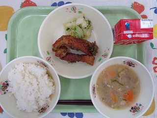 今日は、竹輪を青のりが入った衣をつけて揚げた磯辺揚げ