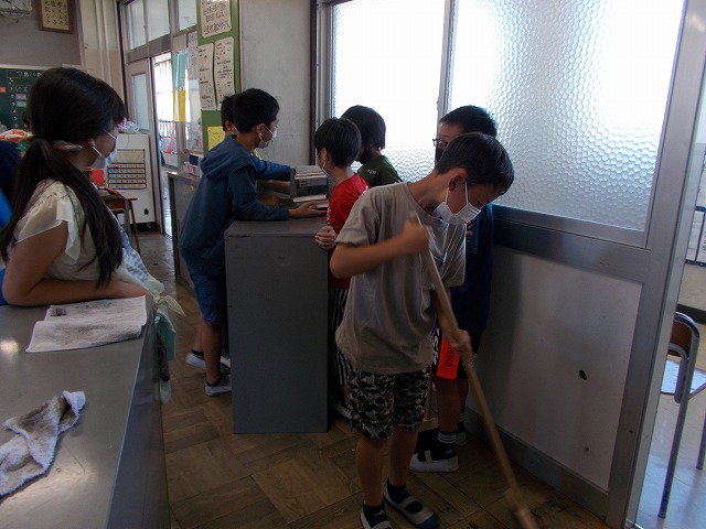 各学年・各クラスで大掃除や通知表渡しがありました。保護者の皆さま、1学期は大変お世話になりました。2学期もよろしくお願いいたします。