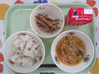 給食の「えんどう豆」は、「実えんどう」で、さやをむき