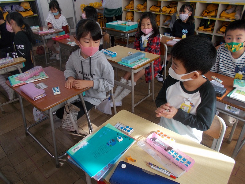 明日の下校時刻は1~2年が14:00、3~6年は14:40です。