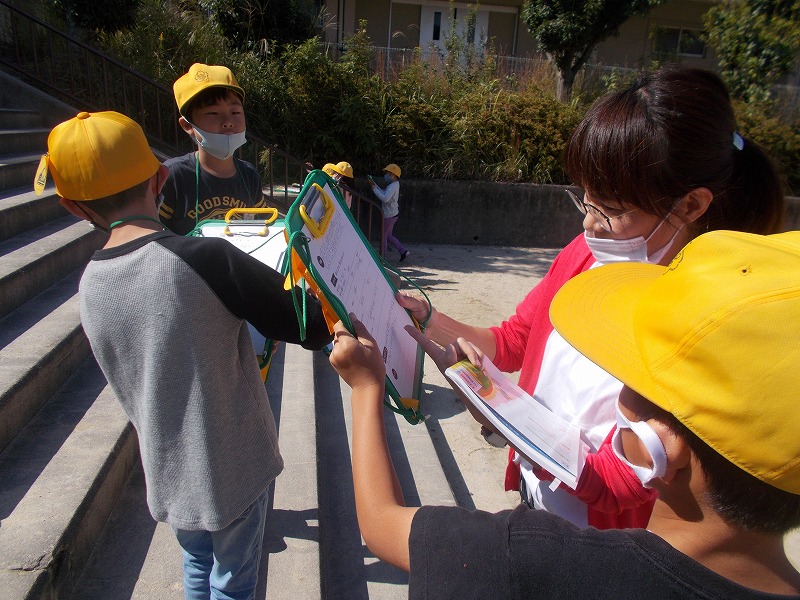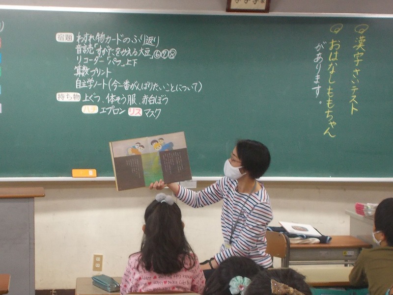 コロナ禍で見合わせていた「おはなしももちゃん」が再開しました(写真左)。3年生理科では「日なたと日かげの地面」単元で、地表を触れた手の感触で両者の差異を比べました(写真右)。