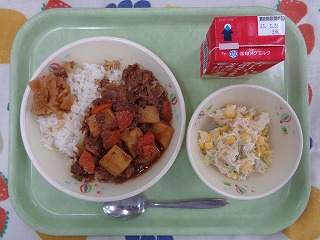 給食では、カレーが月に1度、そして学期の始めと終わりに