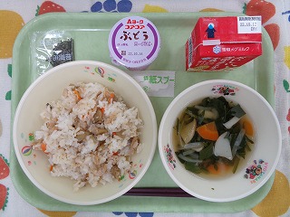 なすにはアントシアンが含まれていて、体の調子を整える効果があります。また、なすは油との相性がよく、油を使って炒めることで、色も鮮やかになります。今日はすし酢と合わせて、ご飯に混ぜた「なすび寿司」でした。ご飯と合わせることで、なすも一見わかりにくく、苦手な子も、思うよりも食べやすいようでした。
