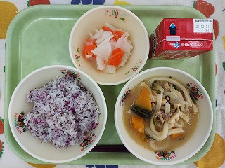 給食では、うどん、人参、だいこんと「ん」のつく食材