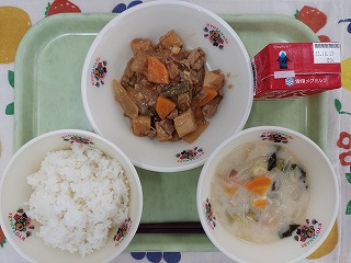 相性汁には、牛乳が入っています。牛乳が入ることで、まろやかな味になります。このように味噌と牛乳の組み合わせが意外と美味しく相性がよいことから『相性汁』という名前がついたといわれています。ベーコンや、じゃが芋、玉ねぎ、にんじんが入り、野菜の旨味も加わって、とても美味しい相性汁です!