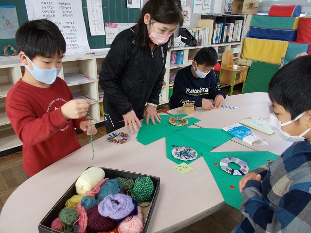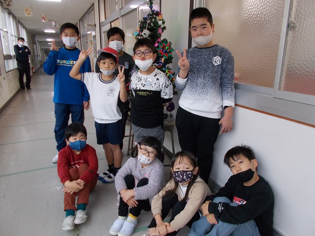 やまもも学級ではツリーの飾り付けをつくりました。廊下のツリーに飾り付けました。今年からイルミネーション電灯も付きました。
