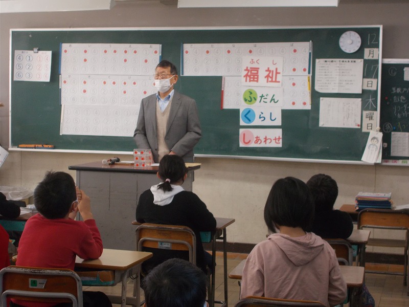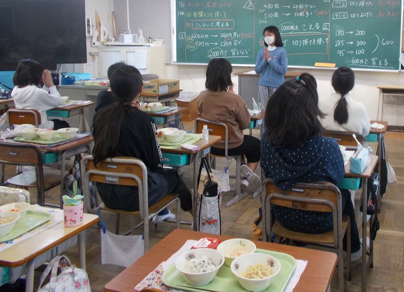 4年生は福祉(点字)学習をしました(写真左)。本日は2学期最後の給食でした(写真右)。