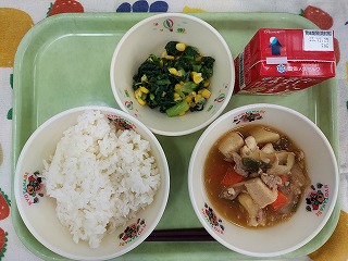 給食では、豚肉と厚揚げと一緒に煮ました。煮物ですが、