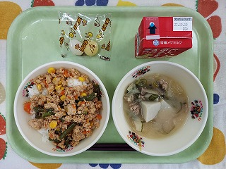 給食では、芋の子汁の「里芋」、月見団子を食べました!